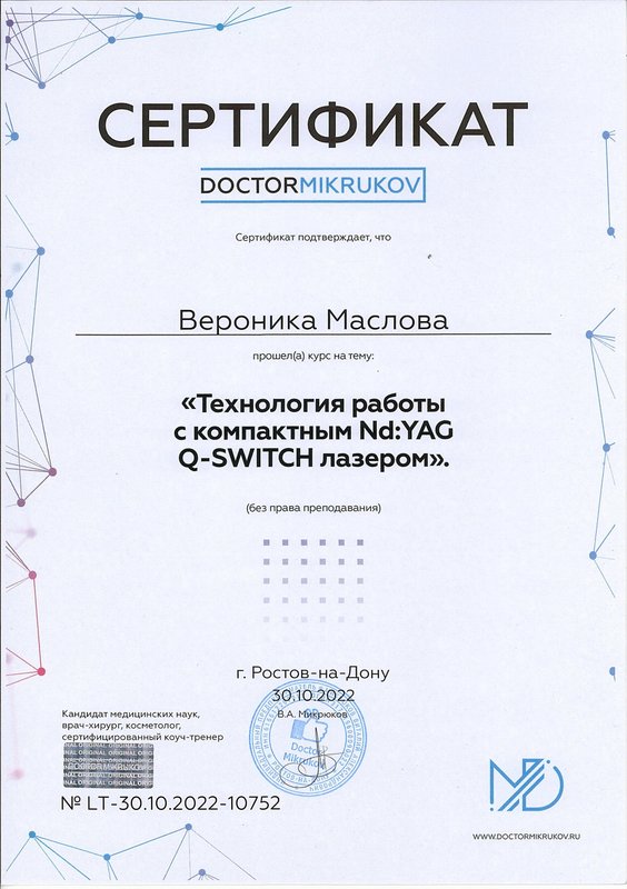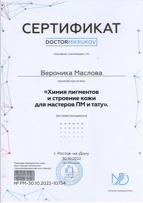 Сервис понравился, мастер Вероника классная! Она хороший человек, общительный, разговорчивый, работу свою знает. На приеме удаляла татуировку. После процедуры были даны рекомендации.
